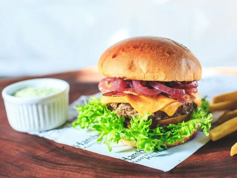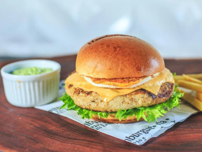 Hambúrguer com 180 g, pão selado, bacon, queijo fatiado Cheddar e maionese...